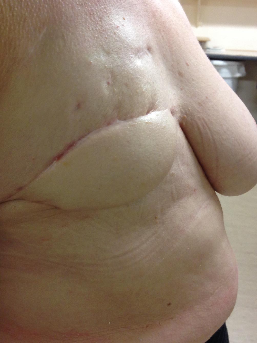 Patient suffered from a congenital deformity which affected the muscle in her right buttock area.